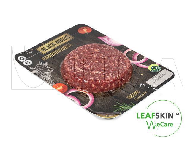 LeafSkin(TM) hazır tabak kapama makinesinde kullanılan en yaygın sürdürülebilir çözümlerdendir. Üst filmi çıkarmak için "kolay açma" köşesi vardır.