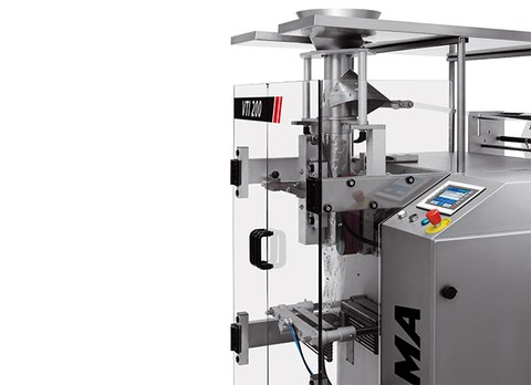 Boyuna 1 yerden, enine 2 yerden yapıştırma olmak üzere tek bir filmi bu şekilde 3 yerden yapıştırarak paket oluşturulan otomatik dikey paketleme makinesi. Bu tür makineler gıda ve gıda dışı sektörlerin kullanımına uygundur.