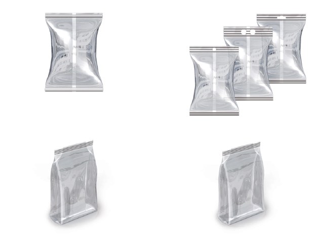 Üç kaynaklı paket yapan dikey paketleme makinesi (VFFS). Orta-yüksek hızlı uygulamalar için yüksek performans fasılalı dikey makine.