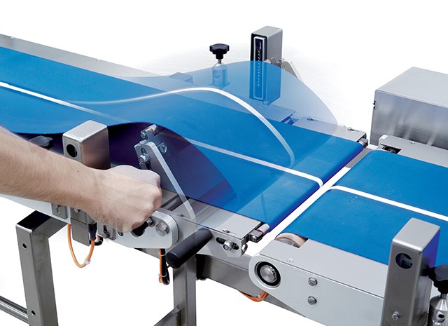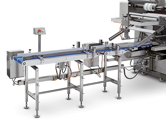 2 metre uzunluğunda, paslanmaz çelikten üretilmiş ve kolay temizlik için tasarlanmış besleme konveyörü.