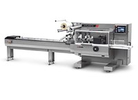Üç noktadan yapıştırma ile yastık tipi paketleme yapan yüksek performans seviyesine sahip yatay paketleme (HFFS) makinesi.