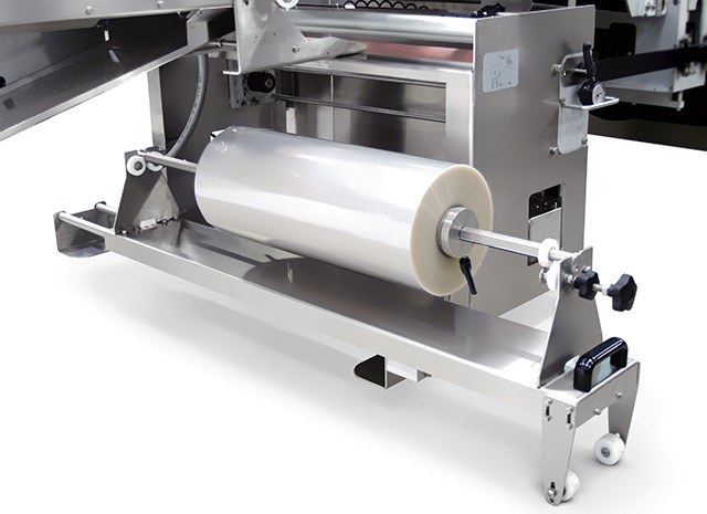 • Ağır film ruloların yüklenmesini kolaylaştıran kolay erişimli film rulo tutucusu. Optimum makine çalışması için motorlu bir film çözme sistemi ile donatılmıştır.