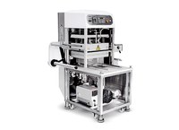Hazır tabak için yarı otomatik tabak kapama makinesi. Modifiye atmosfer (MAP) ve vakumlu paketleme yapabilir. Orta-yüksek performans seviyesine sahip tabak kapama makinesi.
