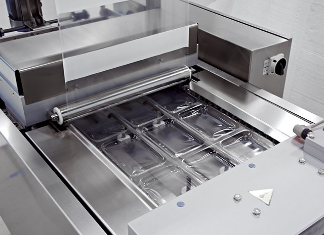 Esnek filmler için modifiye atmosferde (MAP), vakum opsiyonlu paketleme yapan hijyenik thermoform paketleme makinesi. Ufak boyutlu hijyenik thermoform makinesi.