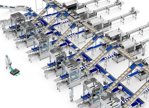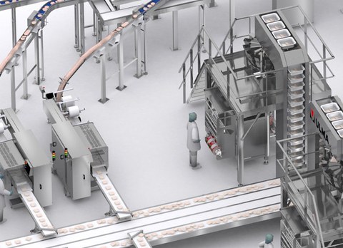 Et endüstrisi için, ürünün taşınması ve yüklenmesinden nihai paketleme ve paletlemeye kadar tam otomatik çözümler.