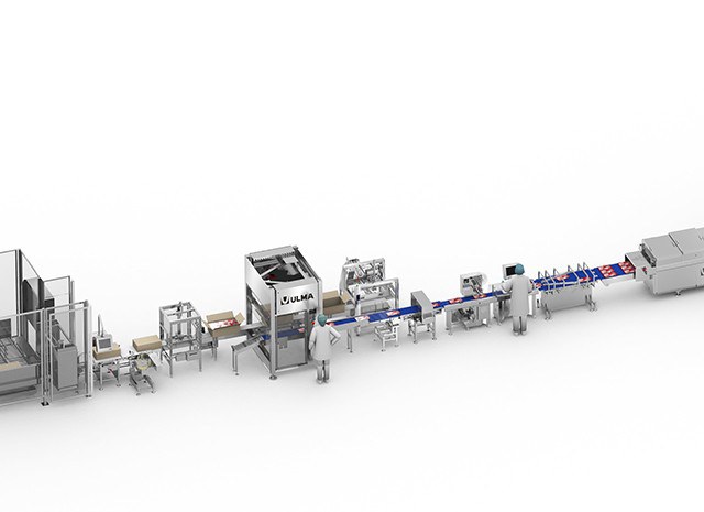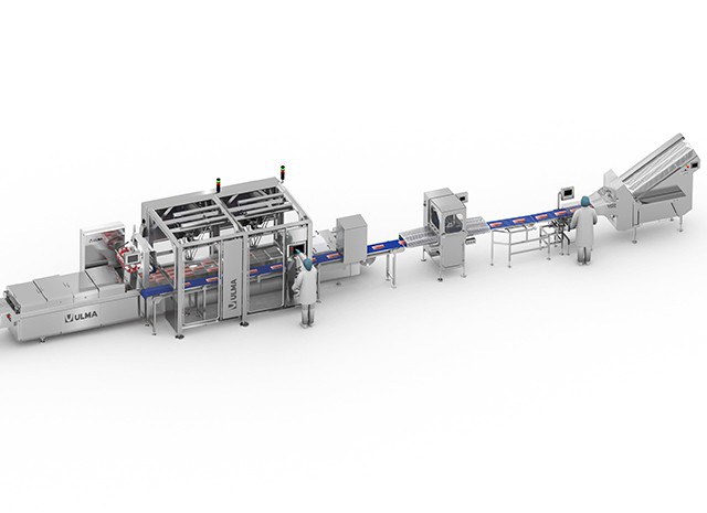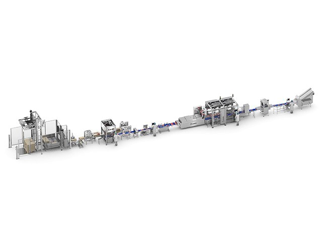 Dilimlenmiş et ürünleri için komple otomatik paketleme hattı.
