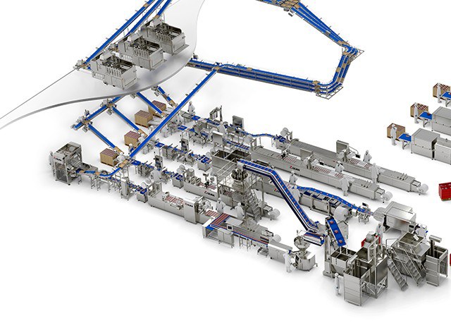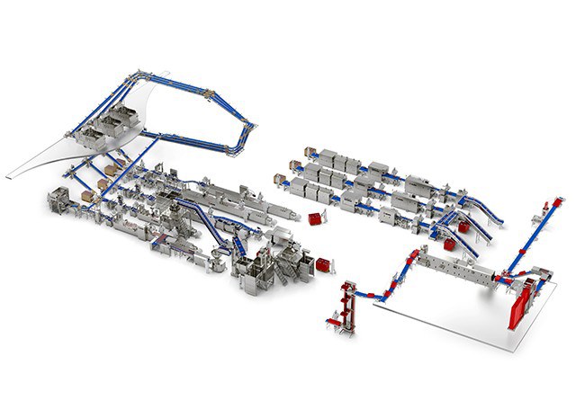 Paketleme tesisinin komple otomasyon çözümü, farklı et ürünleri için sekiz paketleme hattı içermektedir. Büyük endüstriyel kesimlerden, FLOW-VAC® içine vakumlanmış paketlerin yanı sıra termoforda fileto etin ve kıymanın modifiye atmosferde paketlenmesi yapılır.