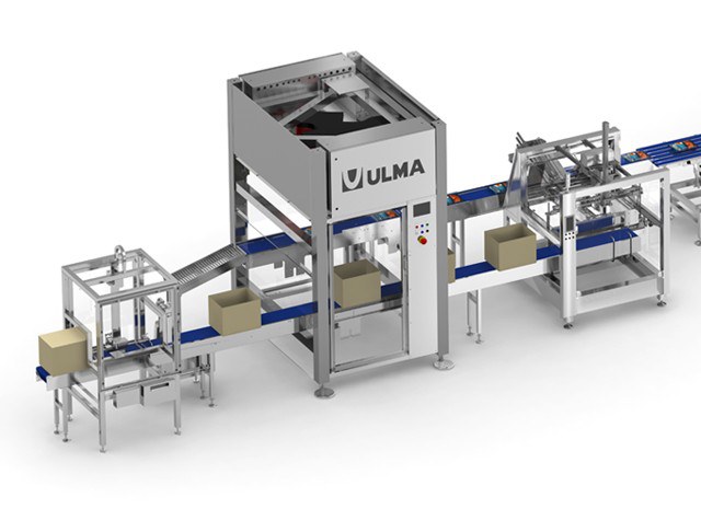 Koli açma düzeneği, karton kolileri karton plakalardan yapar, böylece robotik koli paketleme hücresi dikey paketleme makisinden gelen paketleri bu kutulara yerleştirir.