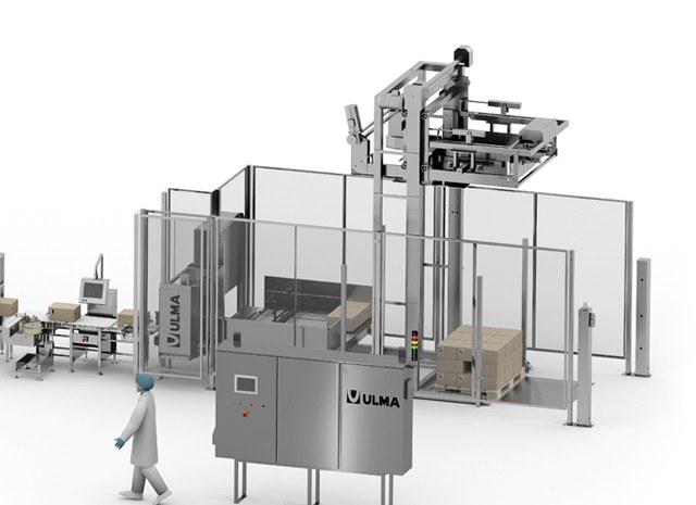 Son olarak, mekanik bir paletleme sistemi vasıtasıyla, paketleri içeren kutuların paletleri, paletler üzerinde oluşturulur.