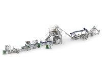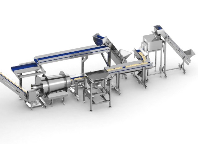 Paketleme hattı, karışımı yapan ve topaklanmayı engellemeye yardımcı olmak için karıştırıcı tamburu beslemek için gönderilen bir peynir rendeleme ünitesi ile başlar.