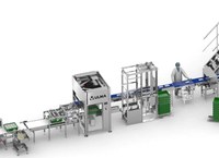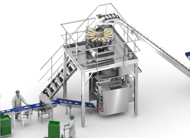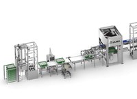 Kurulumda robotize edilmiş kasa dolum hücresini beslemek için boş plastik kasaları otomatik ayırıcı vardır.