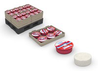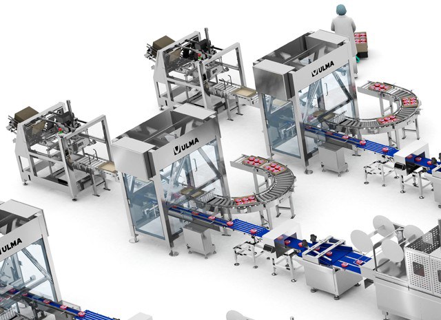 Üç hattın her birinde, karton kutuları yığılmış karton plakalar halinde bir koli düzeneği bulunur. Robotlu koli yapma ünitesi, termoformdan çıkan paketlerin kutulara yerleştirilmesini ve paketler için gerekli mozaiğe göre düzenlenmesini sağlar.