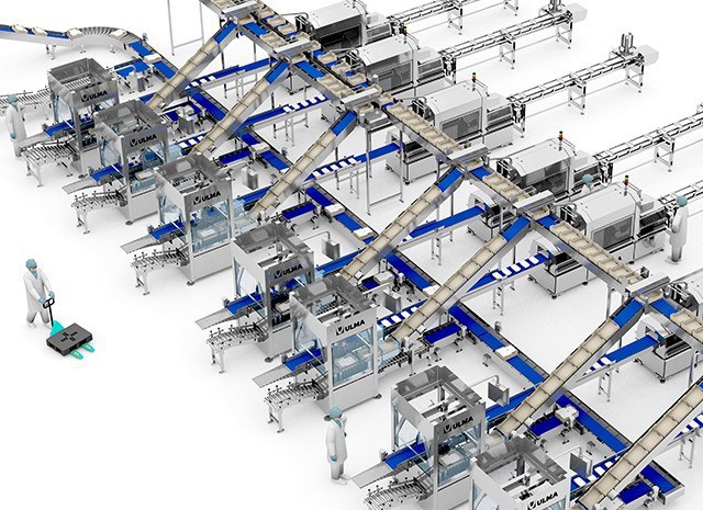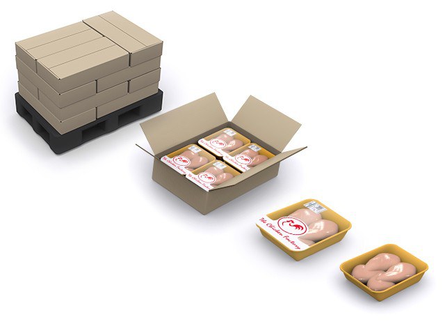 Paketleme tesisinin komple otomasyon çözümü, tavuk parçaları için yedi paketleme hattı içermektedir.