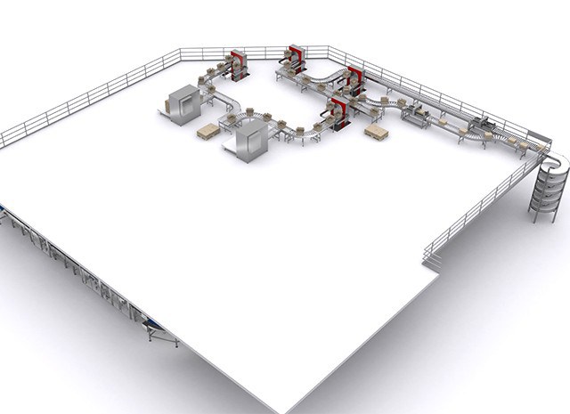 Anahtar teslimi otomatik kurulum; sıra ayırma ve dağıtım sistemi, iki adet birincil yatay paketleme ve dökme kutu yükleme sisteminden oluşur.