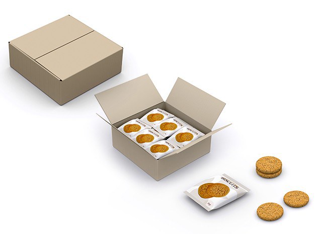 Bisküviler sıra dağıtım sisteminden alınır, ilk önce üst üste konarak ikili istiflenir ve çok bantlı bir sistem vasıtasıyla flowpack paketleme için gerekli ara ayırma ile hazırlanır.