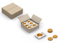 Flowpackta paketlendiktens sonra, üst kattan indiren taşıyıcı yoluyla alınan karton kutulara yerleştirilir.