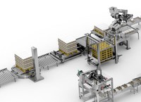 Robotik paletleme, kutu paletlerinin son olarak streç film ile sarılmasından sorumludur.
