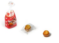 İki flowpack makinesi her bir muffini tekli olarak paketler.
